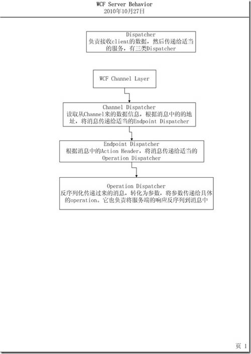 如图,有三种dispatcher。Channel Dispatcher,Endpoint Dispatcher,Operation Dispatcher。它们的职责都在图中有标识。