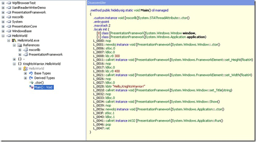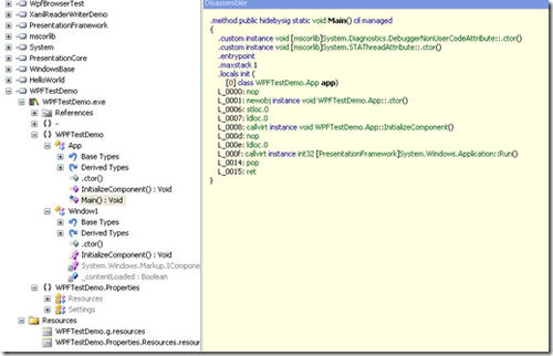 如果对MSIL比较熟悉的朋友,也可以用记事本写同样功能的IL代码,由于没有对WPF窗体的IL做具体研究,所以用Console程序代替,等过一段时间再研究WPF控件的IL代码.