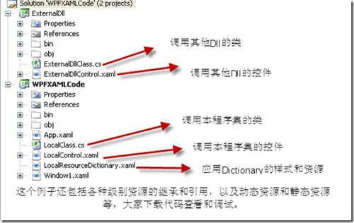 这个部分要讲的东西就太多了,由于这篇文章篇幅有限,同时我觉得用代码诠释能让大家可以更清晰地理解,所以就讲得随意一些,通过一个Demo介绍WPF对资源、类、控件的调用和处理,对Dictionary资源、Application资源、window资源以及控件资源的应用等,如下图所示(本篇所有代码在评论的第一条):