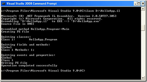 然后打开 Visual Studio Command Prompt,使用 ILASM 开始编译,