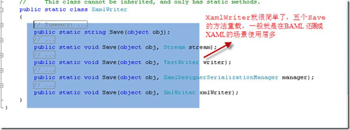 XamlWriter 供一个静态 Save 方法(多次重载),该方法可用于以受限的 XAML 序列化方式,将所提供的运行时对象序列化为 XAML 标记。这句话似乎有点难懂,其实简单的说就是把它序列化为我们需要的类型。