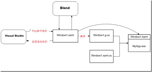 上图就是现在的WPF和Silverlight程序的开发模式,这两类人可以分开来工作,他们都可以对Window1.xaml进行修改和加载,所以这样就使分工更专业了,由于大家专注于某一个方面,分工协作的同时,质量和效率也逐渐提高了。
