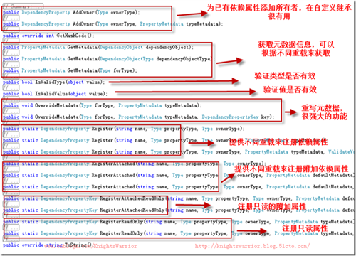 第三步:在静态构造函数中完成依赖属性的元数据注册,并获取对象引用,看代码就知道是把刚才声明的依赖属性放入到一个类似于容器的地方,没有讲实现原理之前,请容许我先这么陈述。