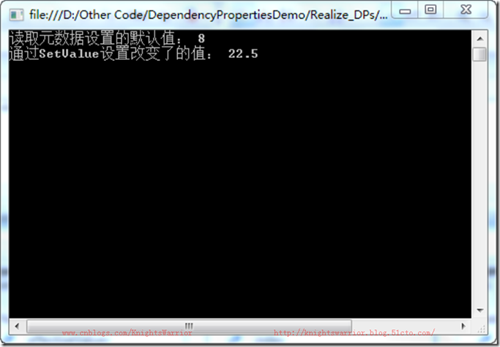 前面我们实现了一个简单的依赖属性系统,现在就得先测试一下其功能,代码如下: