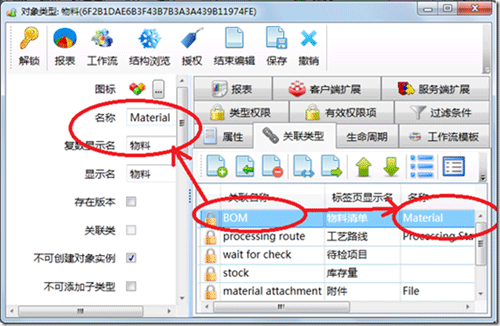 图 通过BOM关联类定义“物料”到“物料”的自关联