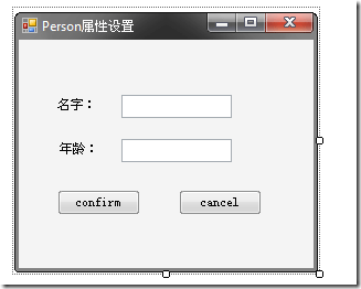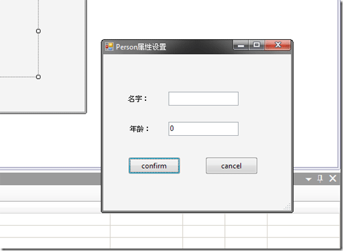 这里要注意的一点就是confirm按钮的DialogResult要设置为DialogResult.OK,cancel按钮的DialogResult要设置为DialogResult.Cancel。至于为什么要这么做大家往后看就知道了。