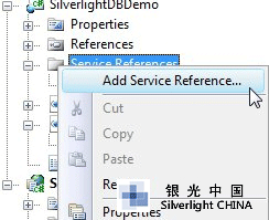 13. 在SilverlightDBDemo客户端,点击右键添加服务引用