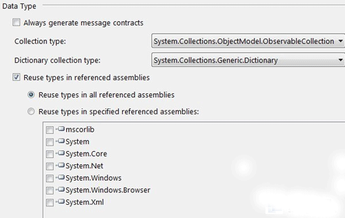 15. 点击"Advanced.."高级按钮,确认选中"Reuse types in referenced assembiles",如下图