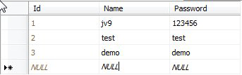 添加内容到Users表,为了方便起见,密码全部使用明文,在正式项目中,建议对密码字段进行加密使用。