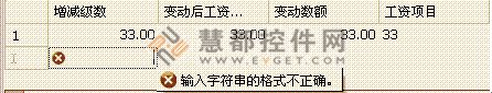 我们使用DEV控件的grid时,动态的创建列,定义RepositoryItemTextEdit 赋给columnedit属性。当数据库中的数值类型赋到该列后,列自动校验录入数据是否为数值类型,但是若在编辑后清空单元格中的数值,及该单元格从有值到无值,则该单元格会提示字符串类型不正确,如下图所示。