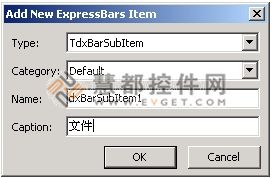 在弹出的窗口(如图)中,Type选择TdxBarSubItem,这是一个能够放置其它种类按钮的容器。Caption置为标题。这里设成“文件”