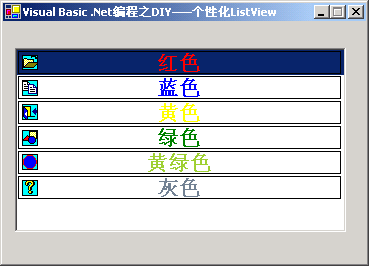 概述:在本文中将介绍在ListBox中各个元素的绘制方法,其中包括绘制各种字体、颜色以及在各项上加上边框和为各项加入图片等。下面首先来了解一下.Net FrameWork SDK为在VB.Net中实现手工绘制ListBox提供的“工具”。