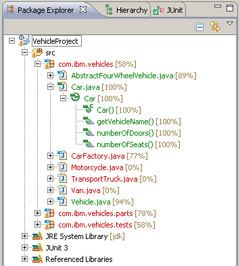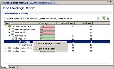 IBM? Rational? Code Coverage特性是一个与IBM? Rational? Application Developer相集成的工具。您可以使用它来生成并分析关于Java程序的覆盖率统计数据。工具会为测试下的程序生成声明覆盖率统计数据(这就是说,执行程序中行的数量与百分比)。