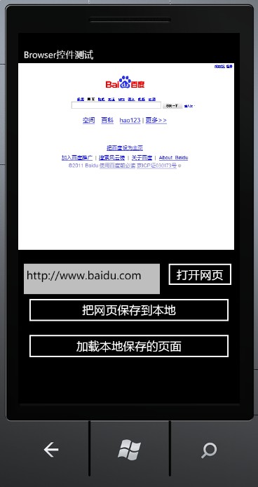 下面的例子WebBrowser控件的简单使用,以及将WebBrowser控件打开的页面保存到手机本地