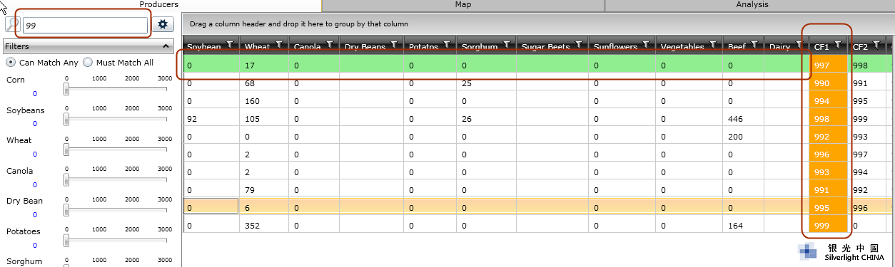 a) 首先定义好StyleSelector,将匹配成功的Cell用不同的样式标记。