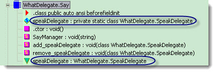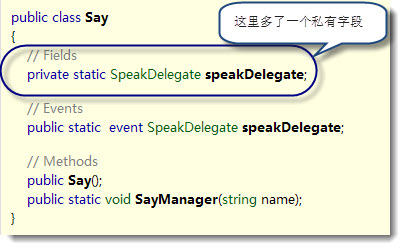 现在让我们看看编译后Say类就可以充分证明我们的结论:事件是对委托封装。