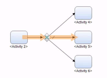 2、多个流入路径,但仅有一个路径会被触发,最后会有一个路径流出。
