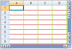 表单能够显示网格线。你可以设置网格线的颜色,宽度,以及样式。 在下面的图片中,水平的网格线是红色的平行线,垂直方向的网格线是绿色的平行线。