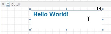 2、双击所创建的标签,调用它的允许输入文本的 内置编辑器。 例如,键入经典的 Hello World! 语句。 然后使用 XtraReports 工具栏 来调整标签的颜色及字体选项。