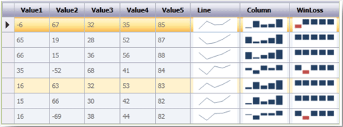 该图表以一个非常简明的方式展示可数据的变化。sparkline不包含轴刻度,其旨在提供一个高层次的数据展示。sparkline的目的就是为了能够迅速地看见高密度数据之间的数据范围差异。