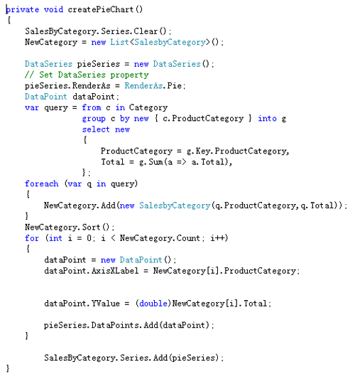 接下来通过DataSeries创建所需的图表序列,添加所需的序列点,并将其添加到图表的序列集合中。