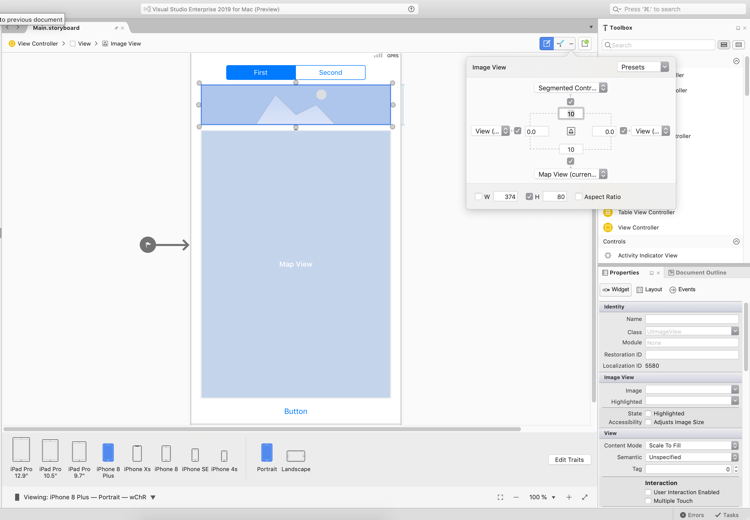 根据用户的反馈,iOS设计人员正在引进一种新的处理约束方法。在设计视图中选择可约束视图时,省略号现在将出现在Constraints Pinning模式选择器旁边的设计器工具栏中。要编辑所选视图的约束,请单击省略号以显示弹出窗口: