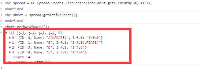 当我们在表格中进行填报、编辑之后,我们可以通过getDataSource方法来获取此时的数据源对象。例如,我们在上面显示的页面上进行填报、编辑后: