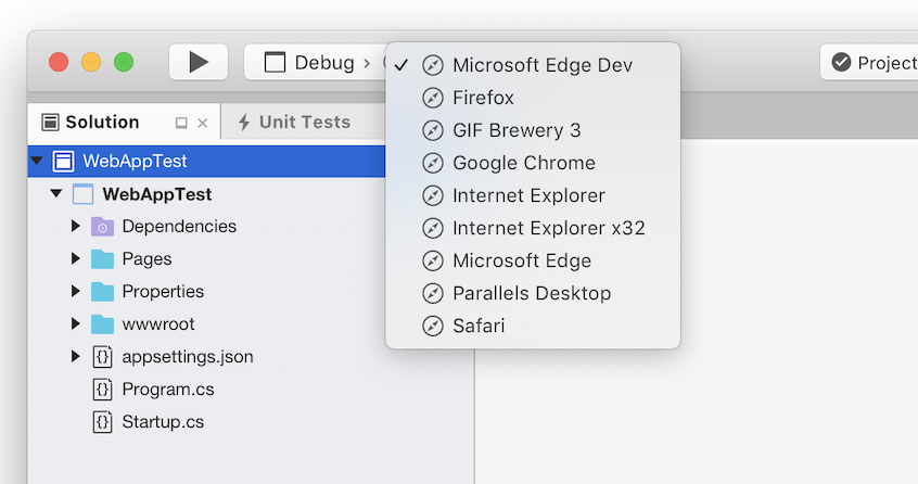此版本添加了选择浏览器的功能,可在运行或调试ASP.NET Core Web应用程序时使用。