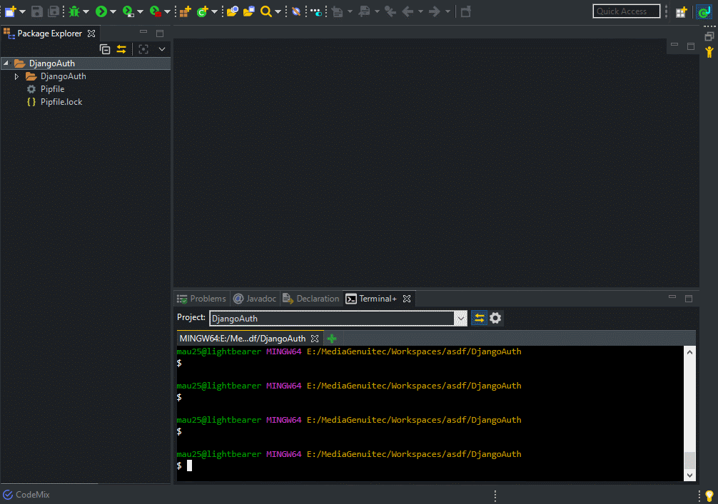 首先,在Eclipse中创建一个虚拟项目,并使用其终端执行几个命令来创建项目。
