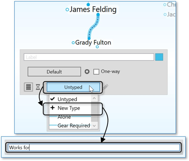 如果当前没有为链接分配类型,则该按钮将显示“Untyped”;如果已经分配了类型,则该按钮将显示类型名称。