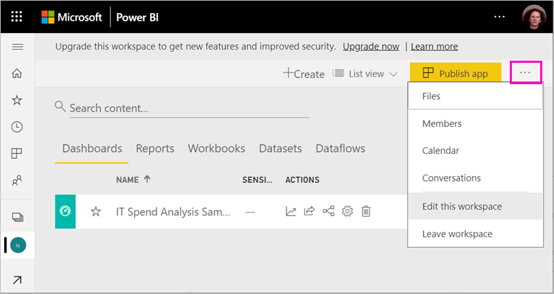 1、在工作区内容列表中选择“更多选项”(...) >“编辑此工作区”。