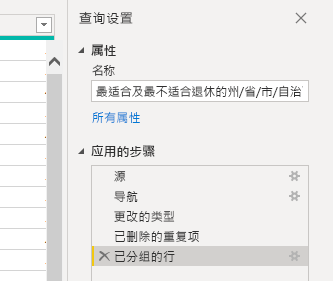“查询设置”窗口列出查询的属性和已应用步骤。