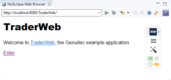 在地址字段中输入URL http//localhost:8080/TraderWeb/html/welcome.html,然后按Enter。