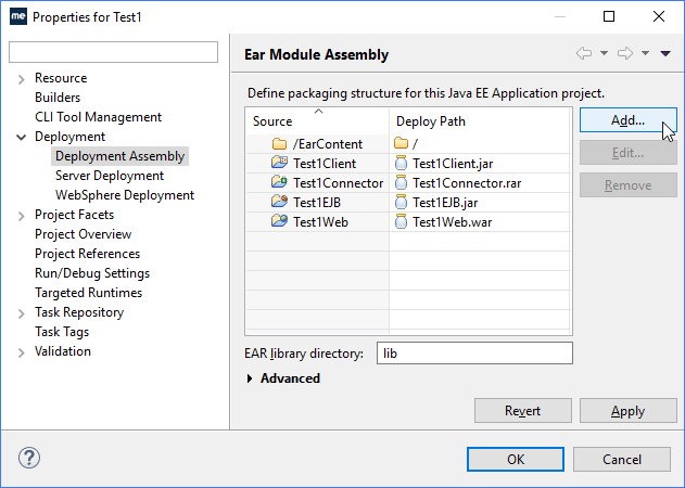 选择Deployment > Deployment Assembly ,然后单击Add。