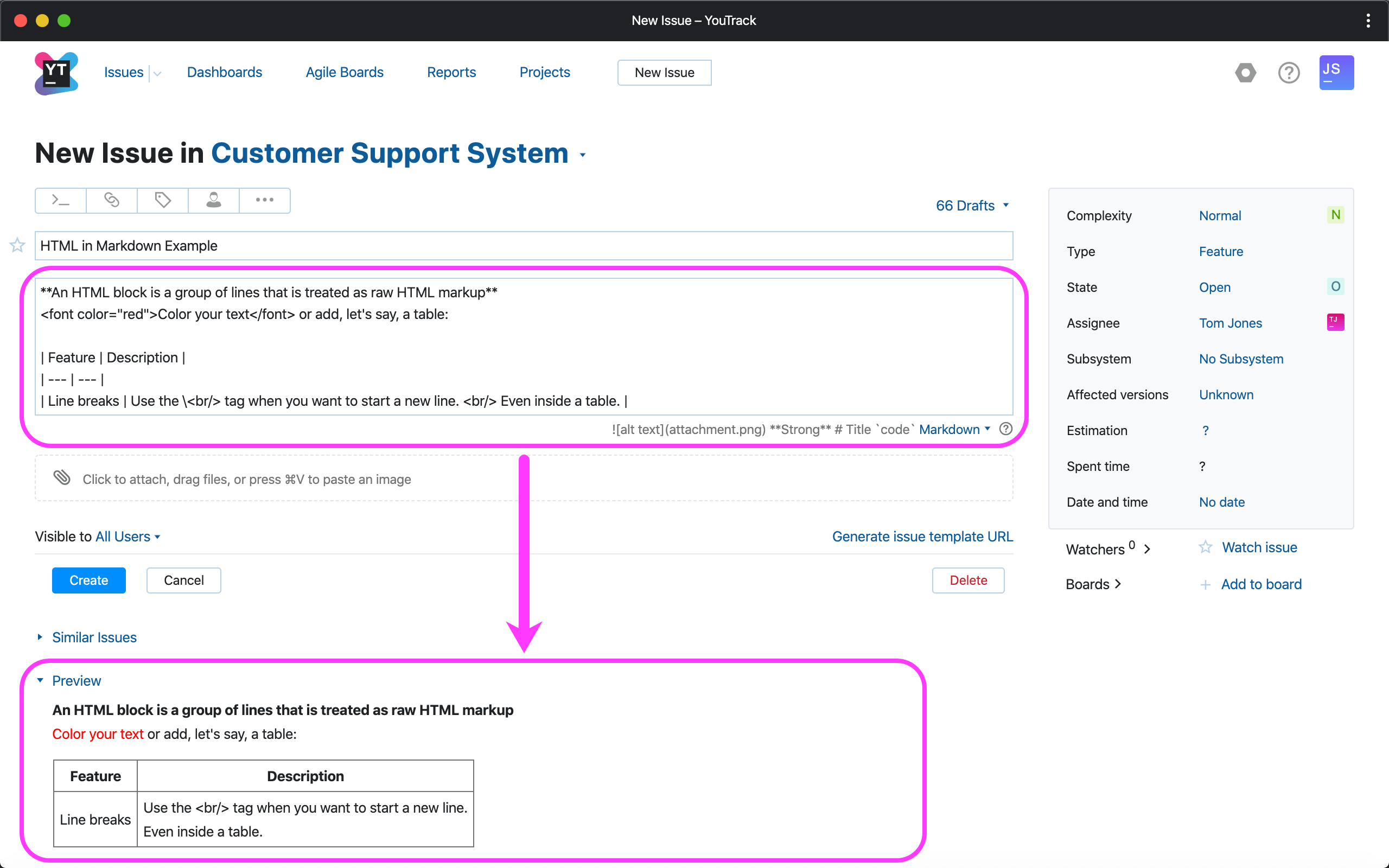 我们扩展了Markdown实现以支持HTML标记。使用可折叠的块,自定义文本颜色,表格单元格中的换行符等来增强问题的描述,注释和文本字段。