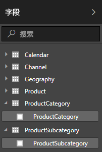 在销售报表中,若想要在一个单值内同时展示产品类别和子类别,如“手机–附件”、“手机–智能手机和PDA”等等。“字段”列表中没有任何字段会提供该数据,但有一个“ProductCategory” 字段和“ProductSubcategory”字段,每个字段都位于它自己的表中,可以创建计算列来合并这两个列中的值。DAX公式可以利用已有模型的完整功能,包括不同的表之间已存在的关系。