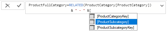 ProductFullCategory = RELATED(ProductCategory[ProductCategory]) & " - " &