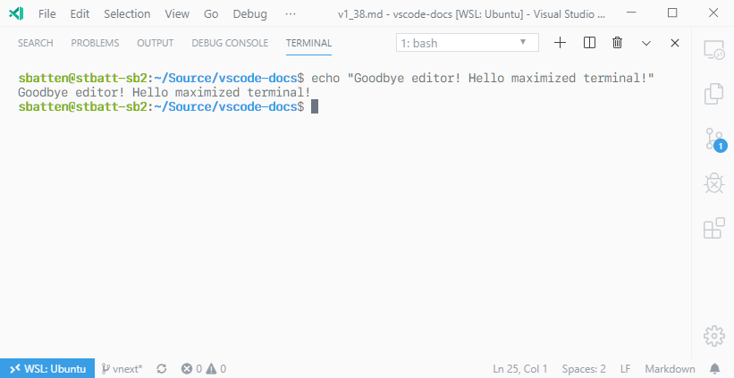 您可以在下面看到最大化的集成终端: