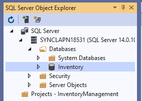 步骤4:右键单击数据库节点并创建一个新数据库(Inventory)。