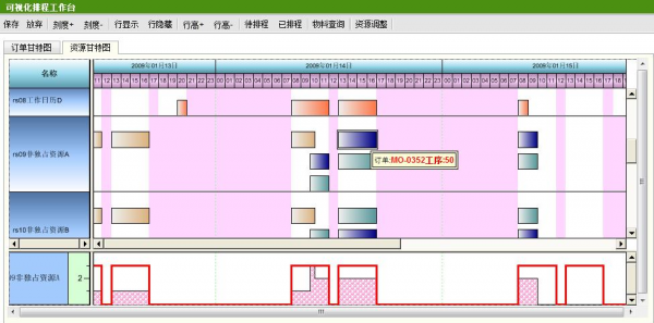 可为您的ERP软件提供图形化的订单、资源甘特图管理模块,同时还融汇了全球领先的APS高级计划调度模块,并结合中国ERP生产排程实际,可为生产调度中的各种问题提供完整的建模和求解方案。