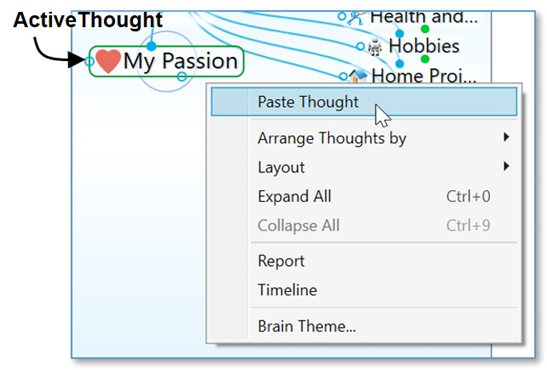 右键单击Brain的任意空白区域,然后单击上下文菜单上的“Paste Thoughts”。
