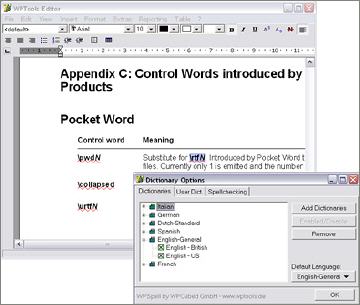 To add spellcheck to WPTools VCL Version 4 and 5 you can use 3rd party products or our product WPSpell. This spell checker is based on a popular spellcheck engine which was successfull for many years. For the benefit of our customers we aquired the license to build a new spellchecking component based on a reliable technology. We adapted the technology to current needs. For example, all use of pointers in the spellcheck engine have been removed, and information has been added to the dictionaries.