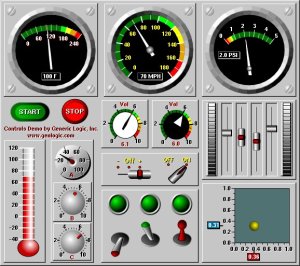 The Toolkit provides a vast library of pre-built widgets: dials and meters, graphs, avionic gauges, process control widgets and other graphical components. All widgets are built on top of the Toolkit's object engine and their behavior is encapsulated in the component's drawing. Each component's drawing can be loaded into the Graphics Builder and extensively customized, including not only editing its resources, but also changing the shape of its graphical elements. Custom components can be created and added to the Builder's palette.