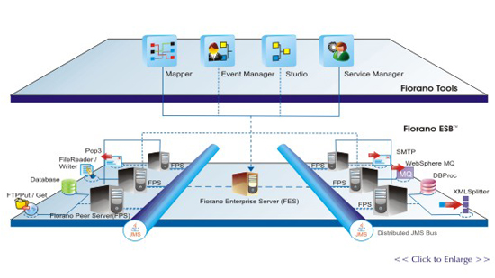 Fiorano ESB™是一个web服务的中间件体系平台。它支持在松散耦合(SOA)和解耦(EDA)业务组件之间直接通讯以及作为中转媒介。不同于其他平台,Fiorano ESB通过单一技术不仅支持SOA而且支持EDA,使用单一的存储方式,业务组件模型、设计、开发以及部署工具和通用工具被整合到一起用于安全以及管理。