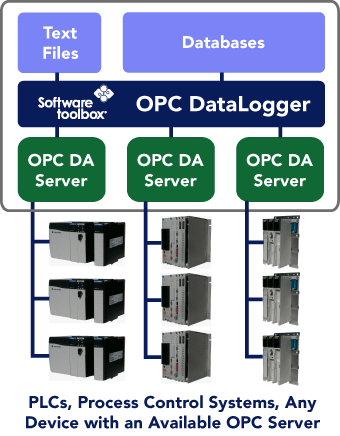 Software Toolbox OPC Data Logger is structured to meet a variety of user’s requirements. Users can license the functionality they need to meet a specific technical requirement and budgetary requirement. The product is structured so you license based on the type of storage you need and can license more then one storage type for the same configuration.