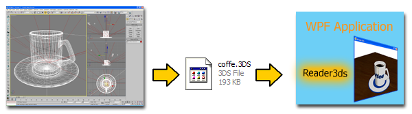 | 3D modeling application | 3ds file | WPF application using Reader3ds |