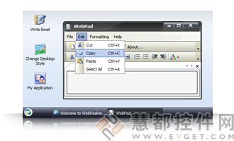 WebMenu可以作为单独的菜单系统使用,也可与WebDesktop集成使用。当其与WebDesktop应用程序集成使用时,其可以继承WebDesktopManager的所有式样以及外观,以创建风格更一致的用户界面。若要进行更为完全的操控,其复杂图像支持允许用户自定义菜单的每一像素点,以保证与即在应用程序的风格无缝集成。