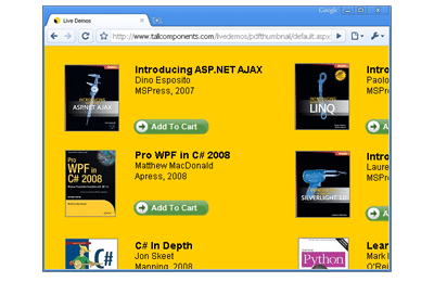 PDFThumbnail.NET is a 100% .NET ASP.NET control that streams PDF pages as thumbnail images to the browser. This enables you to e.g. show a PDF document preview on a webpage. PDFThumbnail.NET is FREE.