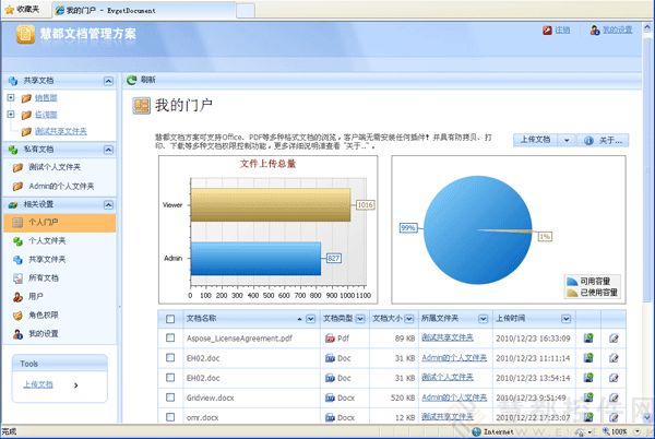 1、企业门户,经典文档管理布局,文档数量、内容及相关功能设置一目了然。