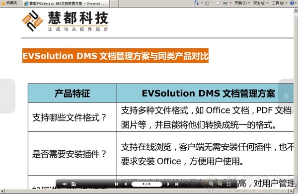 | 产品特征 | EvDMS文档在线浏览方案 | 其他文档在线浏览产品 |